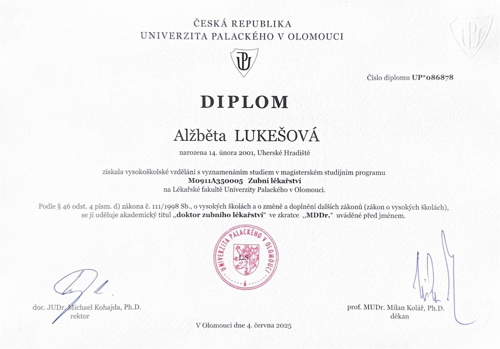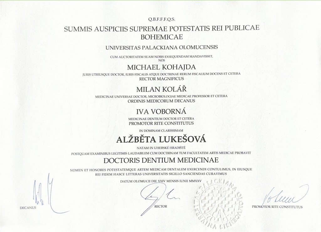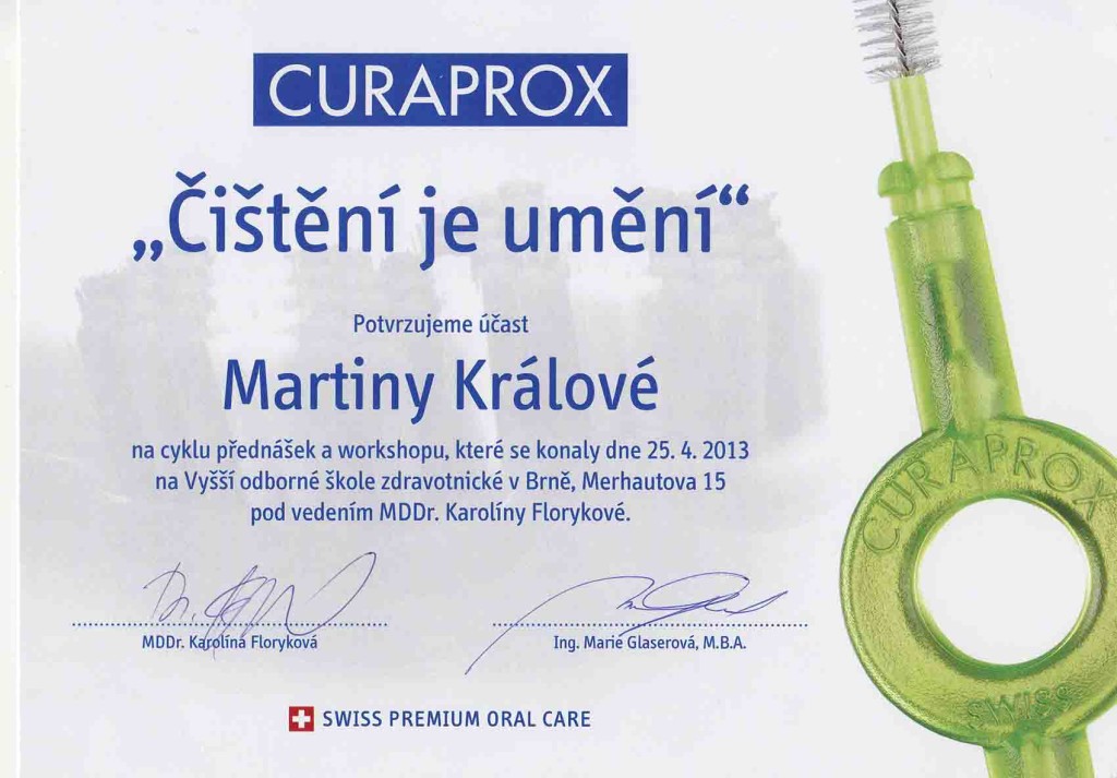 Reprezentovala univerzitu na celostátní soutěži v estetických rekonstrukcích chrupu dle Lorenza Vaniniho. Absolvovala četné stáže na renomovaných pracovištích, v zahraničí na klinice ústní čelistní a obličejové chirurgie Eastbourne District General Hospital ve Velké Británii.