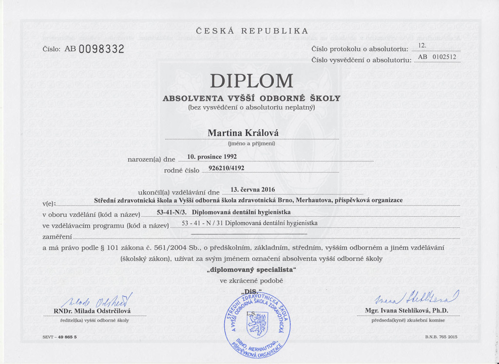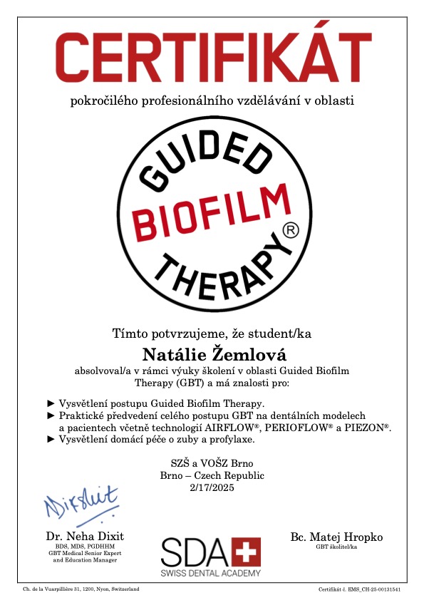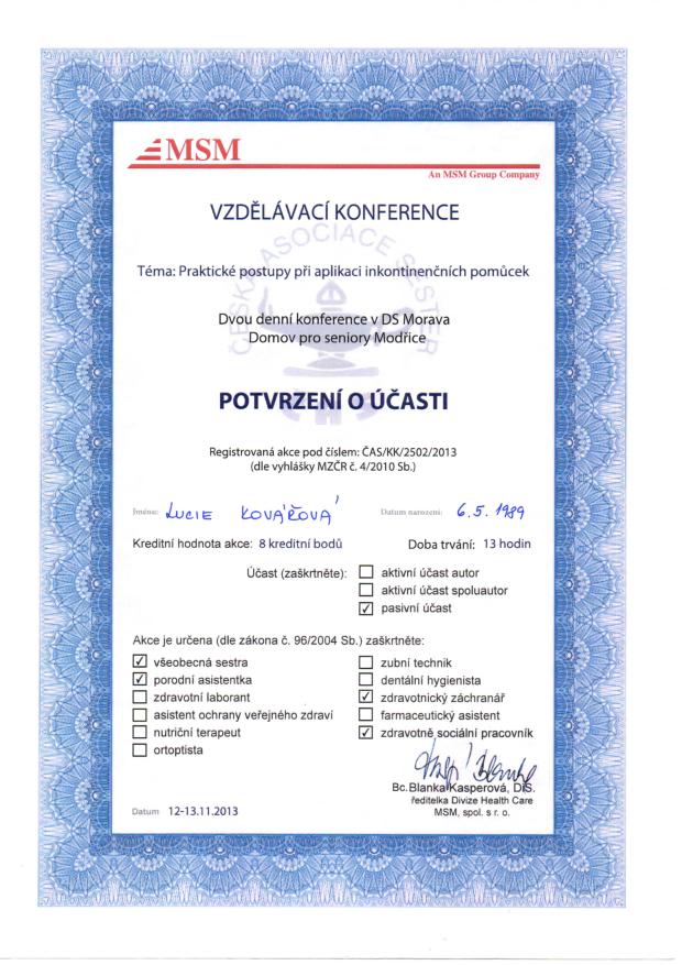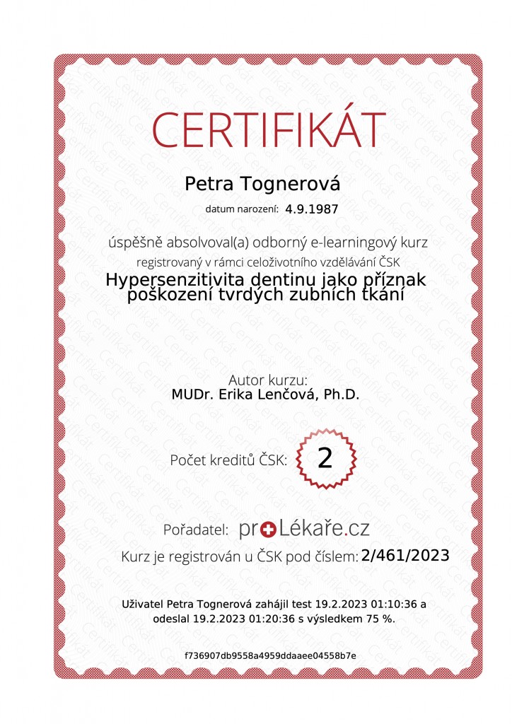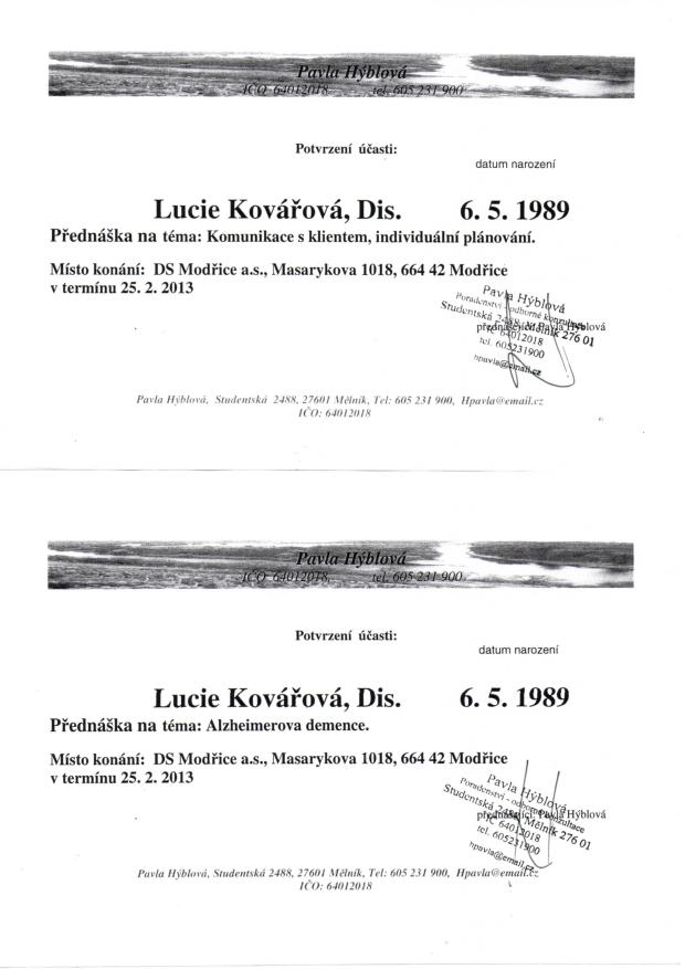 Již od studentských let se pravidelně účastní odborných školení a ve svém oboru se stále vzdělává. Dvakrát vyhrála první místo v celorepublikové soutěži Junior Challenge (2014, 2015).